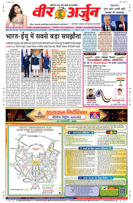 рдирдИрдВ рджрд┐рд▓реНрд▓реА (рд╡реАрд░ рдЕрд░реНрдЬреБрди)ред рднрд╛рд░рддреАрдп рд▓реЛрдХрддрдВрддреНрд░ рдХреЗ рдорд╣рд╛рдкрд░реНрд╡ рдЧрдгрддрдВрддреНрд░ рджрд┐рд╡рд╕ рдкрд░ рдЖрдЬ рдкреНрд░рд╛рдд: 10 рдмрдЬреЗ рдЕрдк .....
