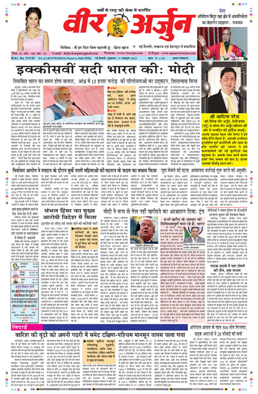 рд╡реАрд░ рдЕрд░реНрдЬреБрди рд╕рдВрд╡рд╛рджрджрд╛рддрд╛ рдирдИрдВ рджрд┐рд▓реНрд▓реАред рджрд┐рд▓реНрд▓реА рдХреА рдореБрдЦреНрдпрдордВрддреНрд░реА рд╢реНрд░реАрдорддреА рд░реЗрдЦрд╛ рдЧреБрдкреНрддрд╛ рдиреЗ рдЖрдЬ рдХрд╛рд▓рд┐рджреА .....