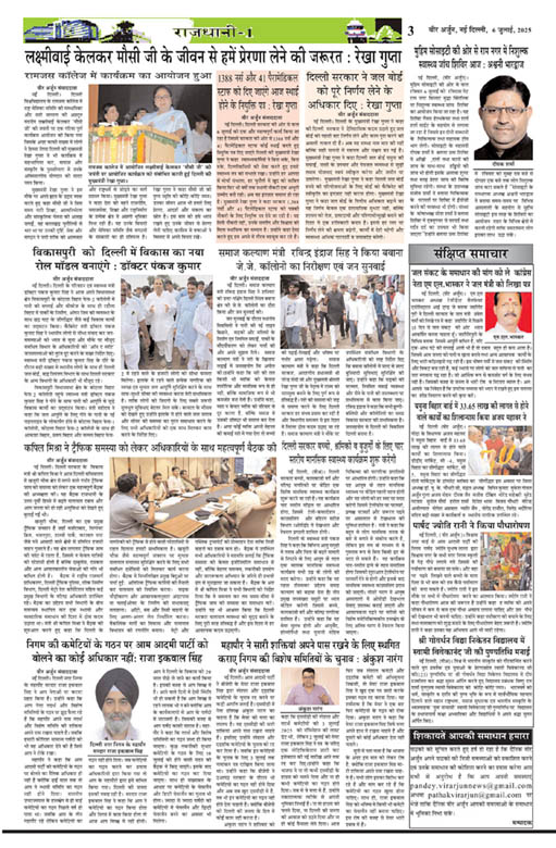 नईं दिल्ली, (वीर अर्जुन)। एम.एल भास्कर अध्यक्ष रेजीडेन्ट वैलपेयर एसोसिएशन आईं एण्ड जे .....