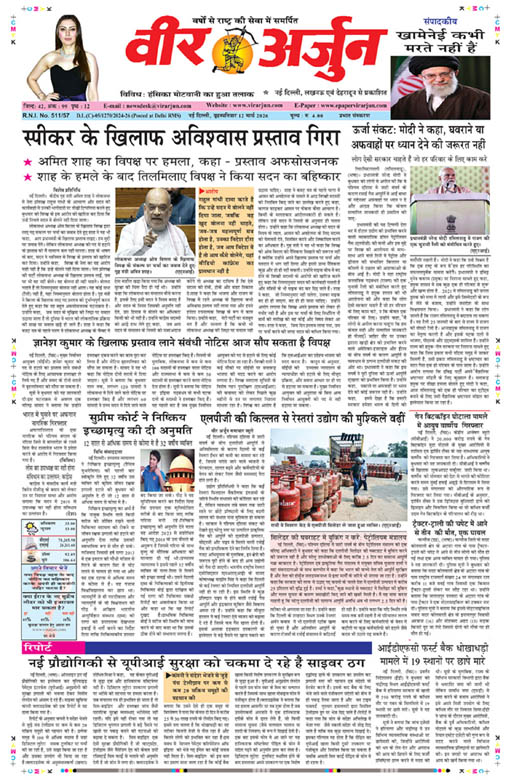 पाठकों अर्ज एवं सभी ज्हब्. अथवा भेजें में नईं दिल्ली ( वीर अर्जुन ) : राजधानी दिल्ली मे .....