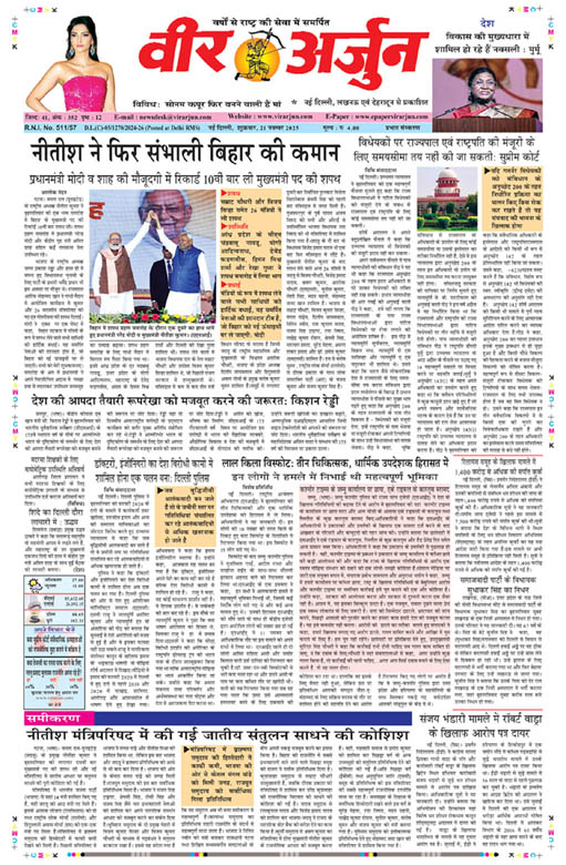 рд╡реАрд░ рдЕрд░реНрдЬреБрди рд╕рдВрд╡рд╛рджрджрд╛рддрд╛ рдирдИрдВ рджрд┐рд▓реНрд▓реАред рджрд┐рд▓реНрд▓реА рдХреА рдореБрдЦреНрдпрдордВрддреНрд░реА рд╢реНрд░реАрдорддреА рд░реЗрдЦрд╛ рдЧреБрдкреНрддрд╛ рдиреЗ рдЖрдЬ рд▓рд╛рд▓ рдХрд┐ .....