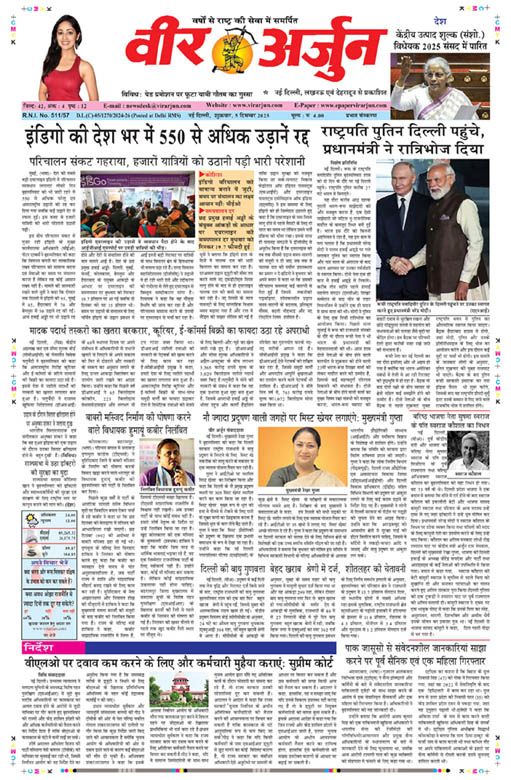 वीर अर्जुन संवाददाता नईं दिल्ली। रूस के राष्ट्रपति व्लादिमीर पुतिन की दो दिवसीय भारत या .....